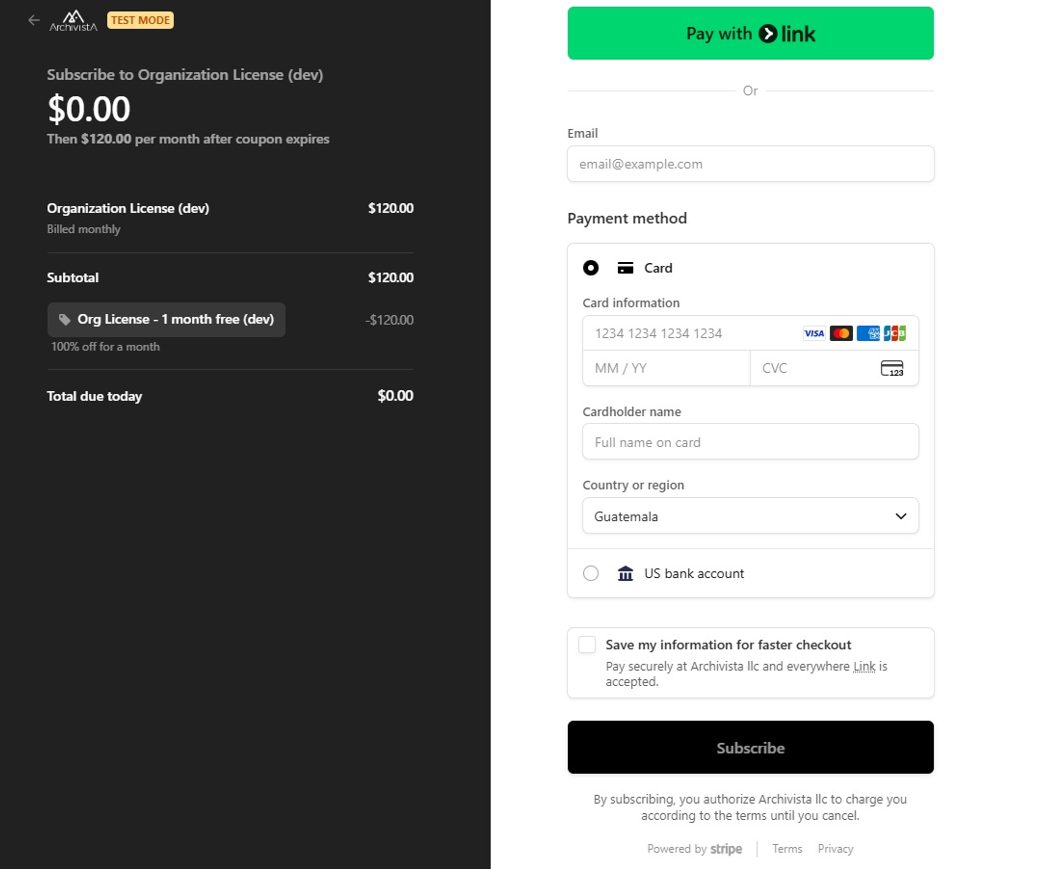 · Fill in your billing information (credit card or other payment